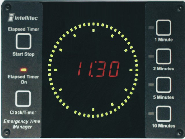 Emergency Time Manager Is a clock and timer designed to assist Emergency Medical personnel with time management. Keeping track of critical timing events is often a difficult task. The clock is intended to be installed on the interior of an ambulance or other emergency vehicle.